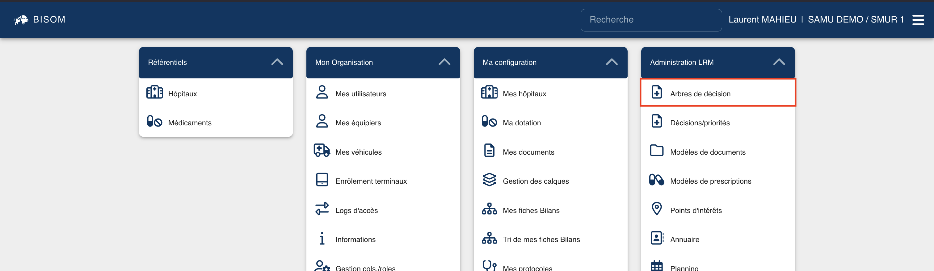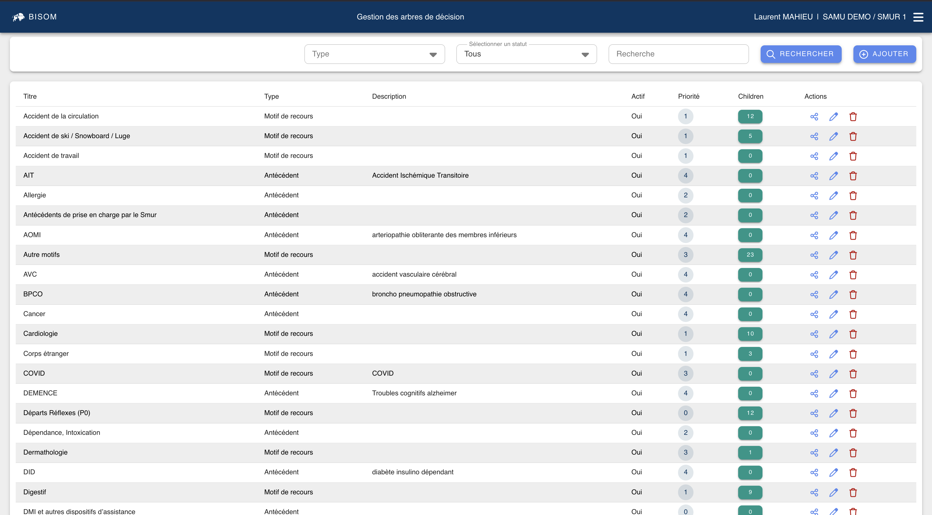 Les administrateurs et représentant légaux des entités clientes de BISOM ont la possibilité de gérer la liste des arbres de décision.