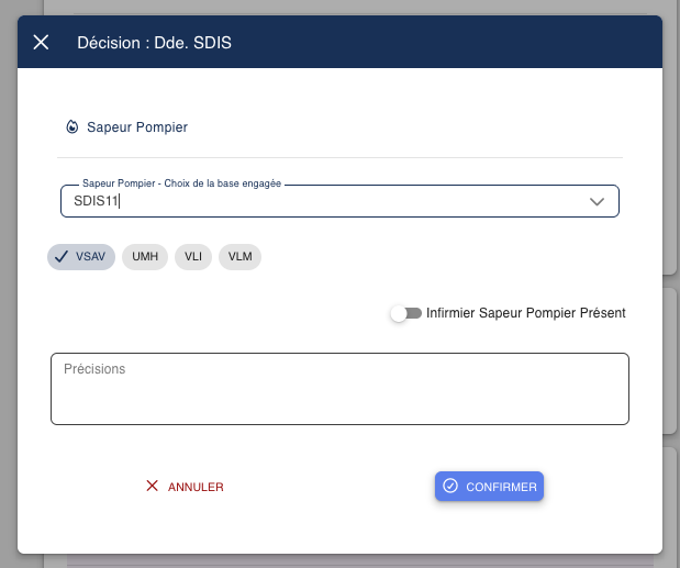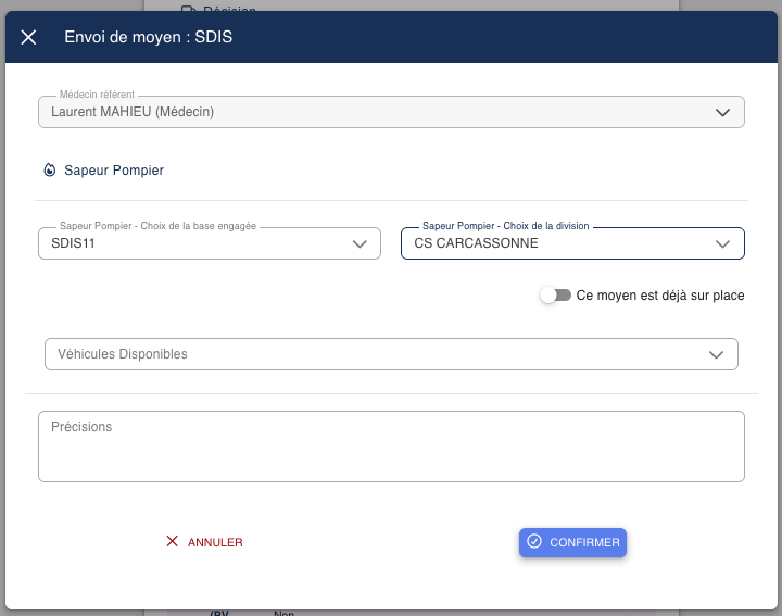 Lors du passage en carence d'une décision AP, en fonction de la configuration de votre SAMU, vous aurez la possibilité de demander l'intervention du SDIS ou ou d'effectuer une demande de concours SDIS.